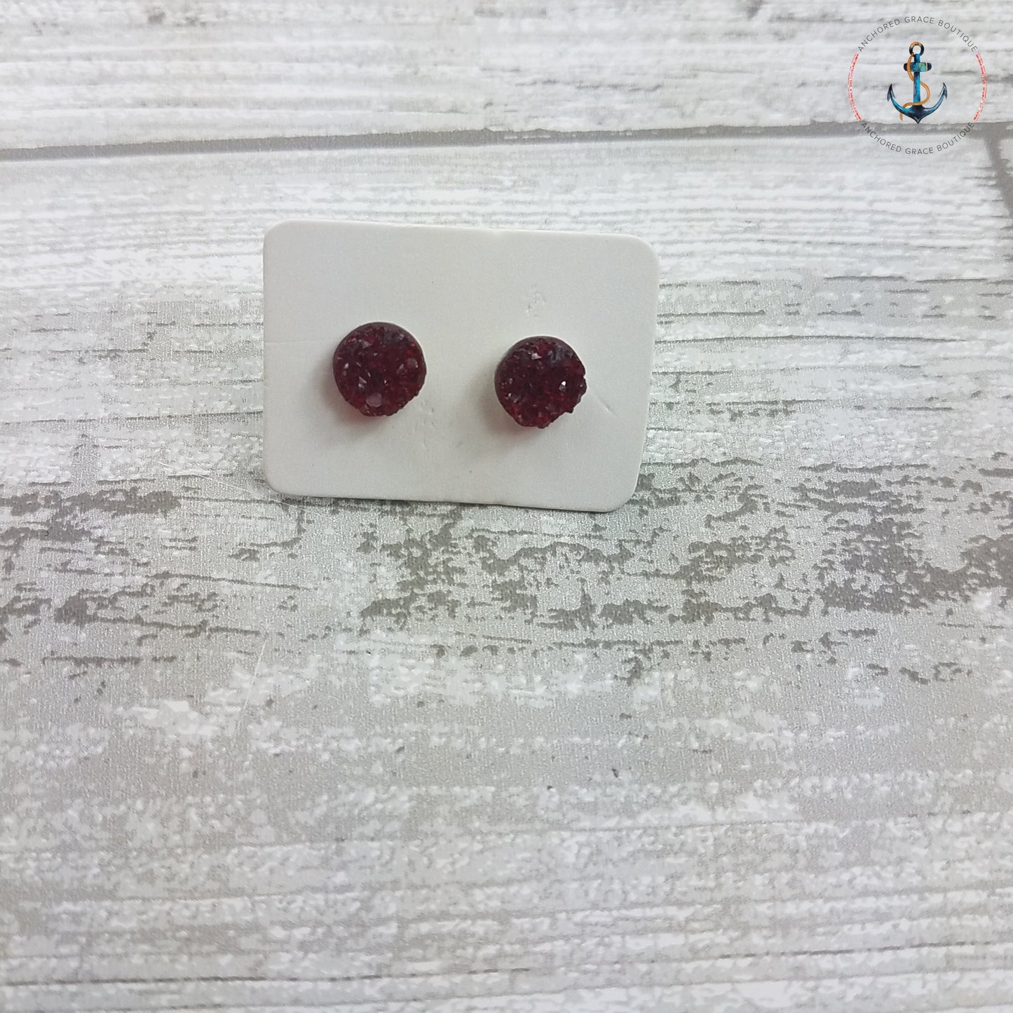 8mm Druzy Stud Earrings - Burgundy