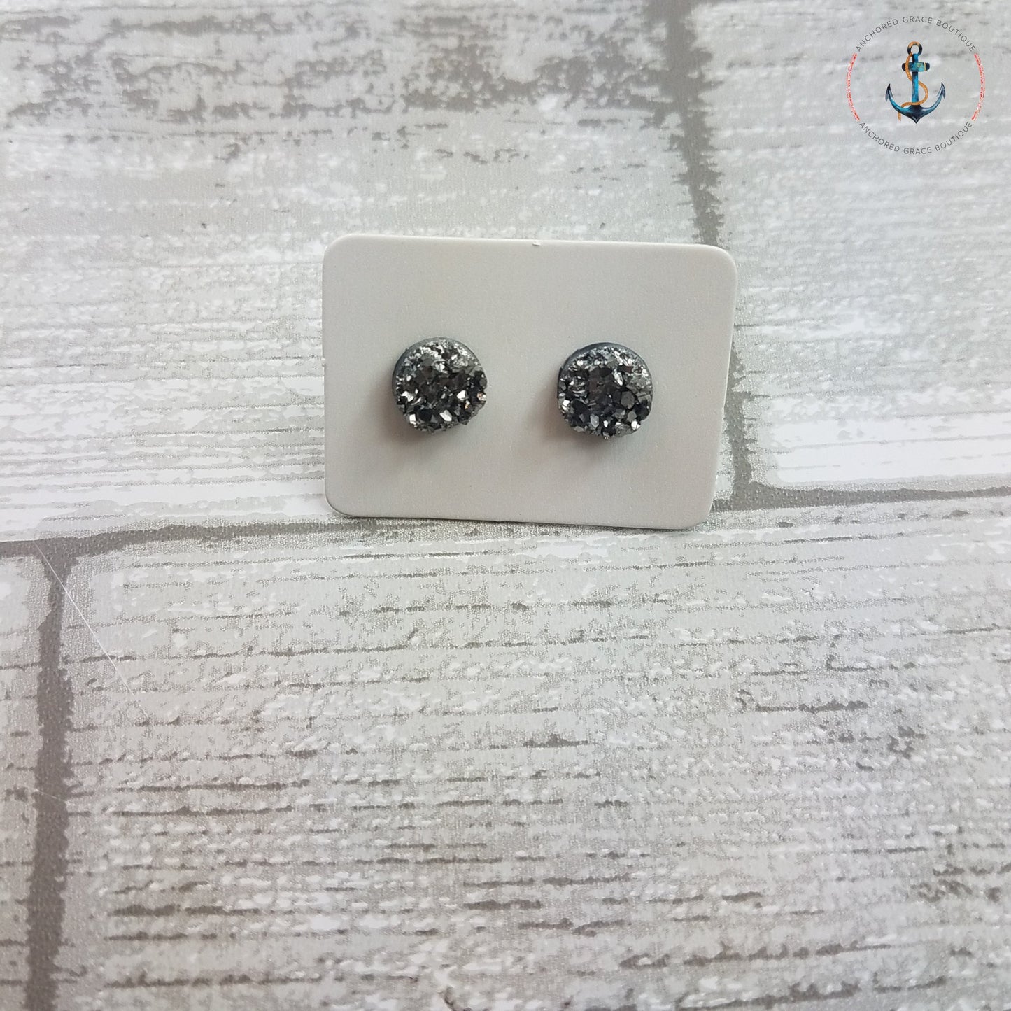 8mm Druzy Stud Earrings - Silver