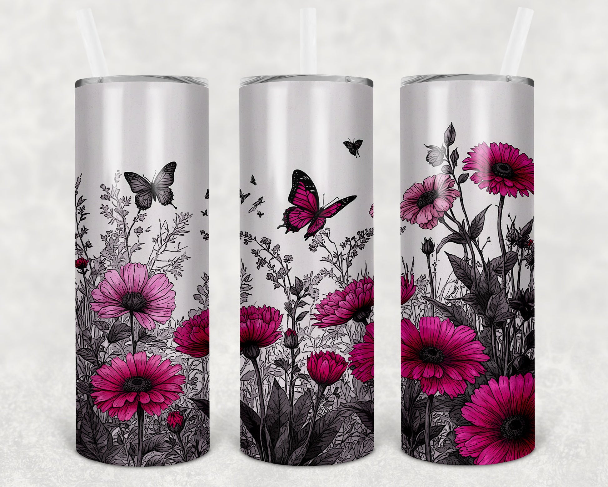 Butterflies and Pink Daisies 20 oz Skinny Tumbler