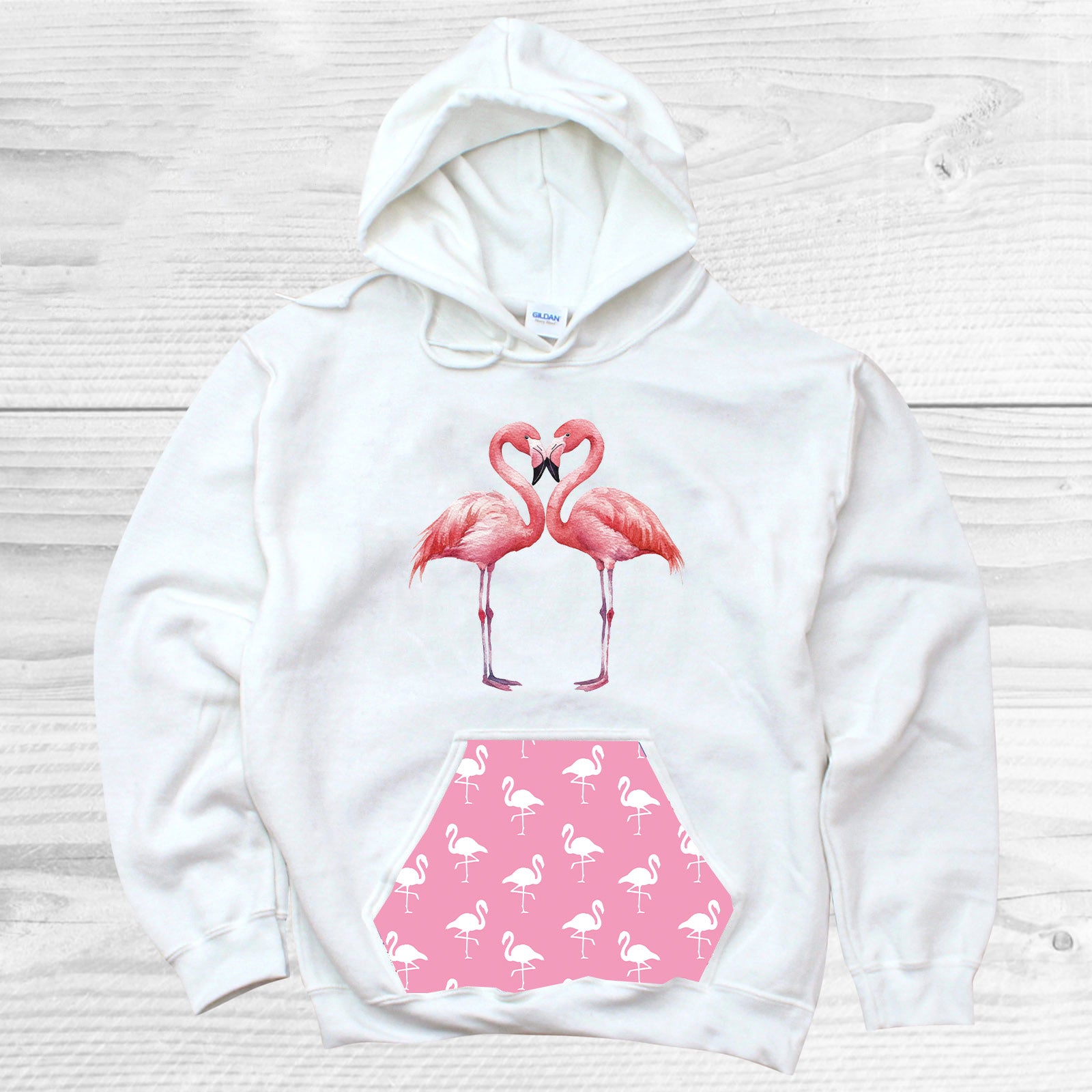Flamingo Pattern Pocket Hoodie