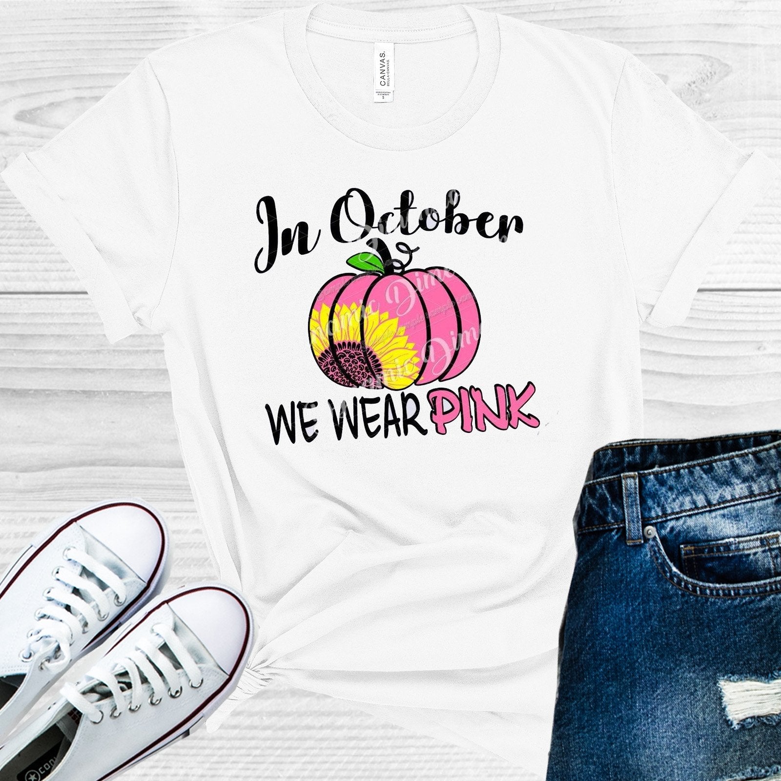 In October We Wear Pink Breast Cancer Awareness Graphic Tee