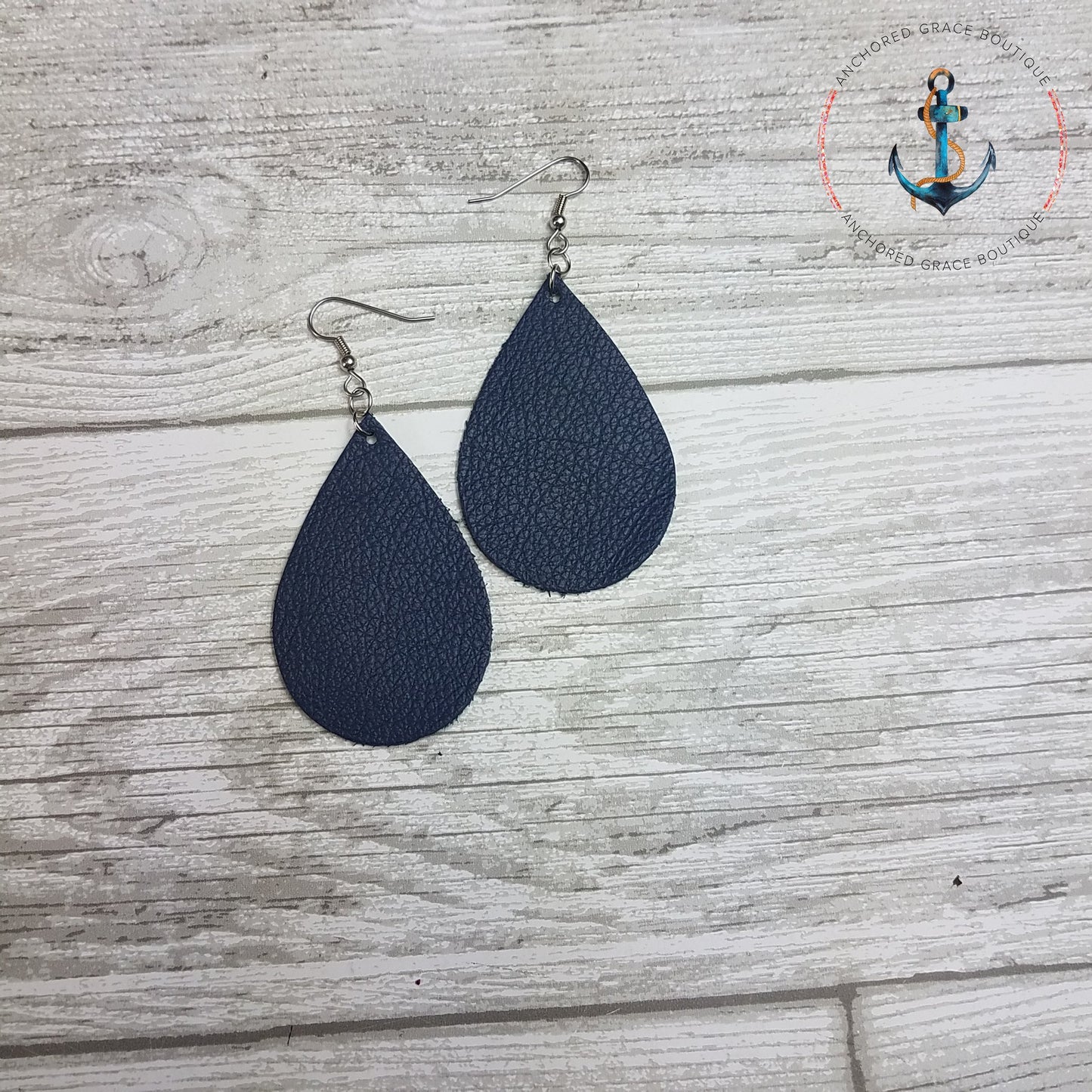 Navy Blue Leather Drop Earrings